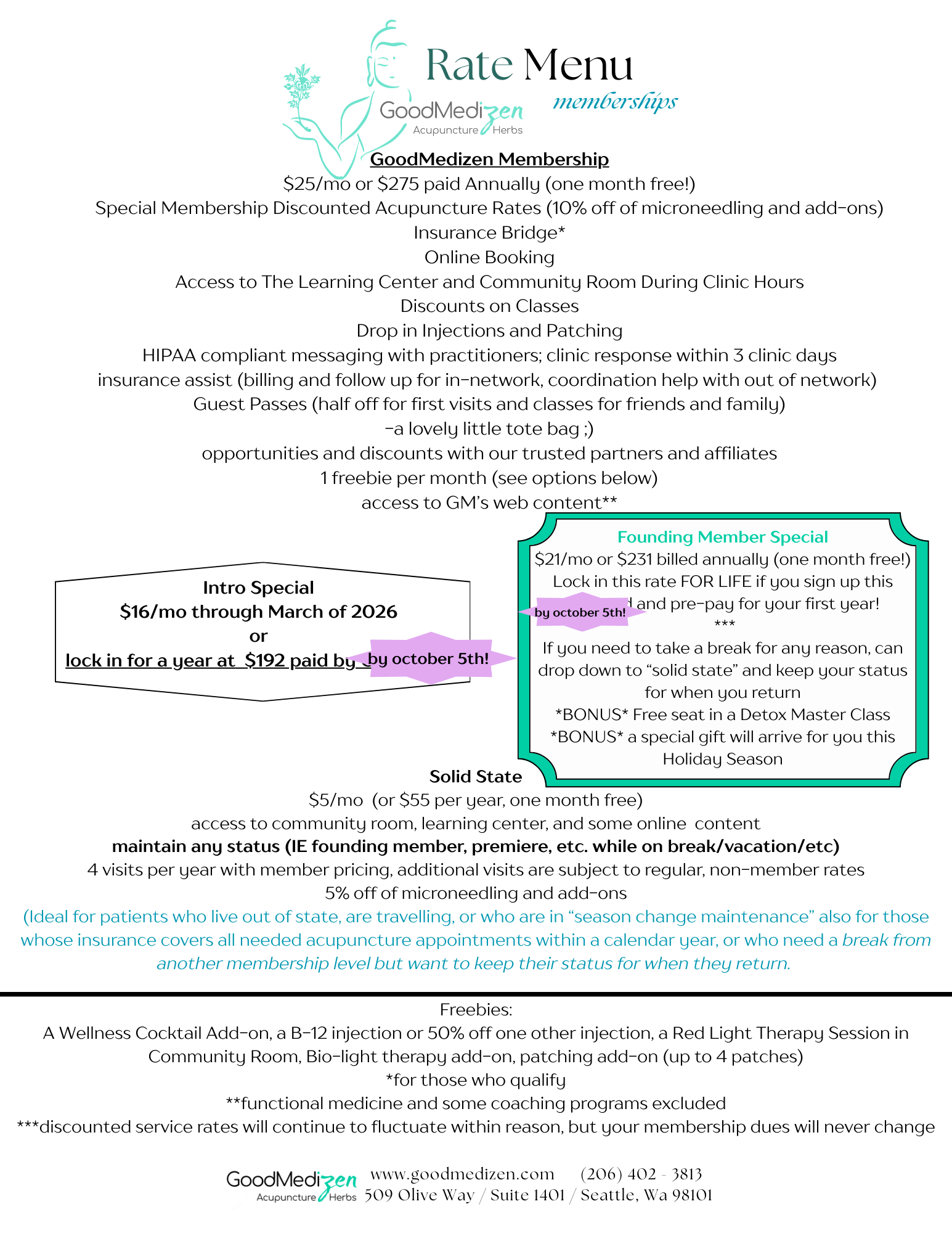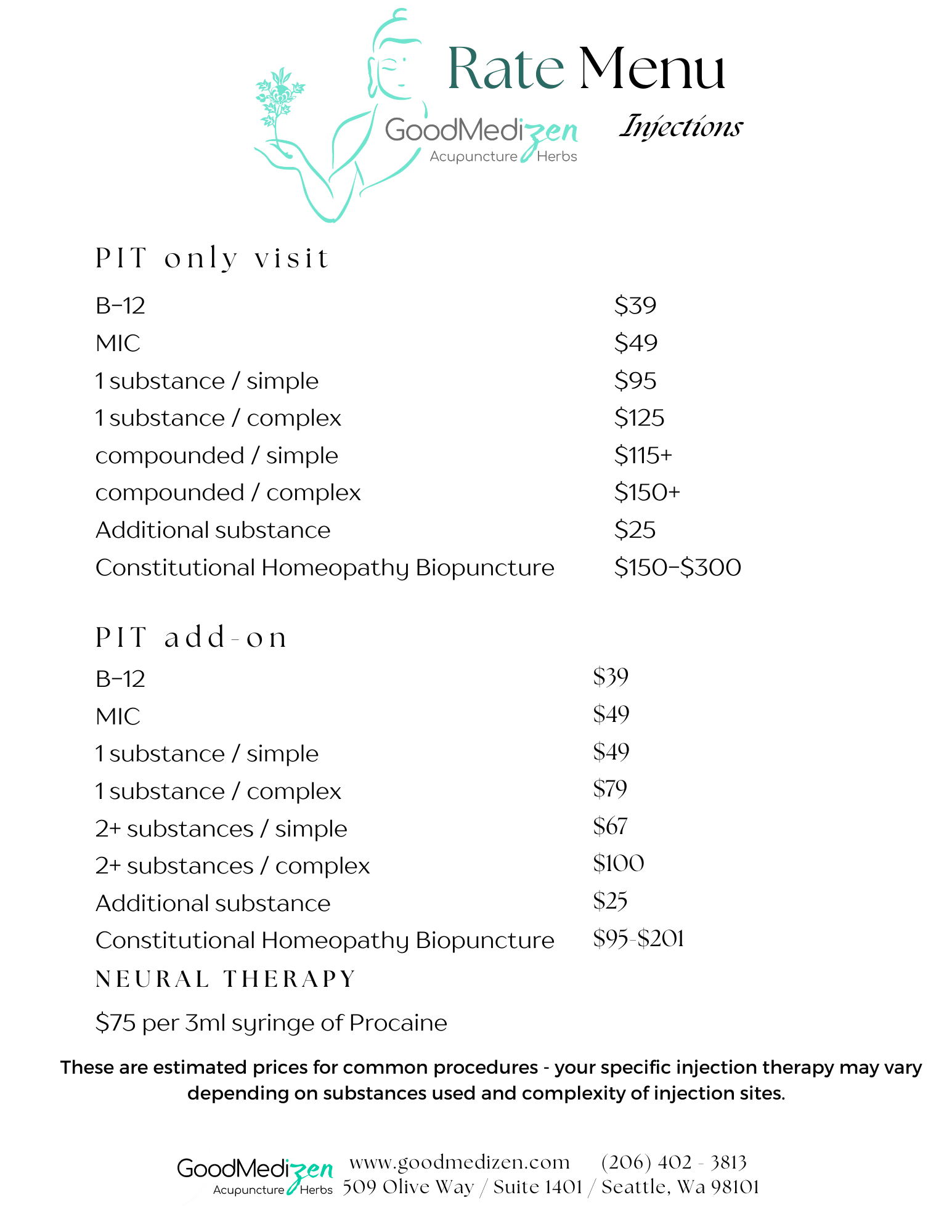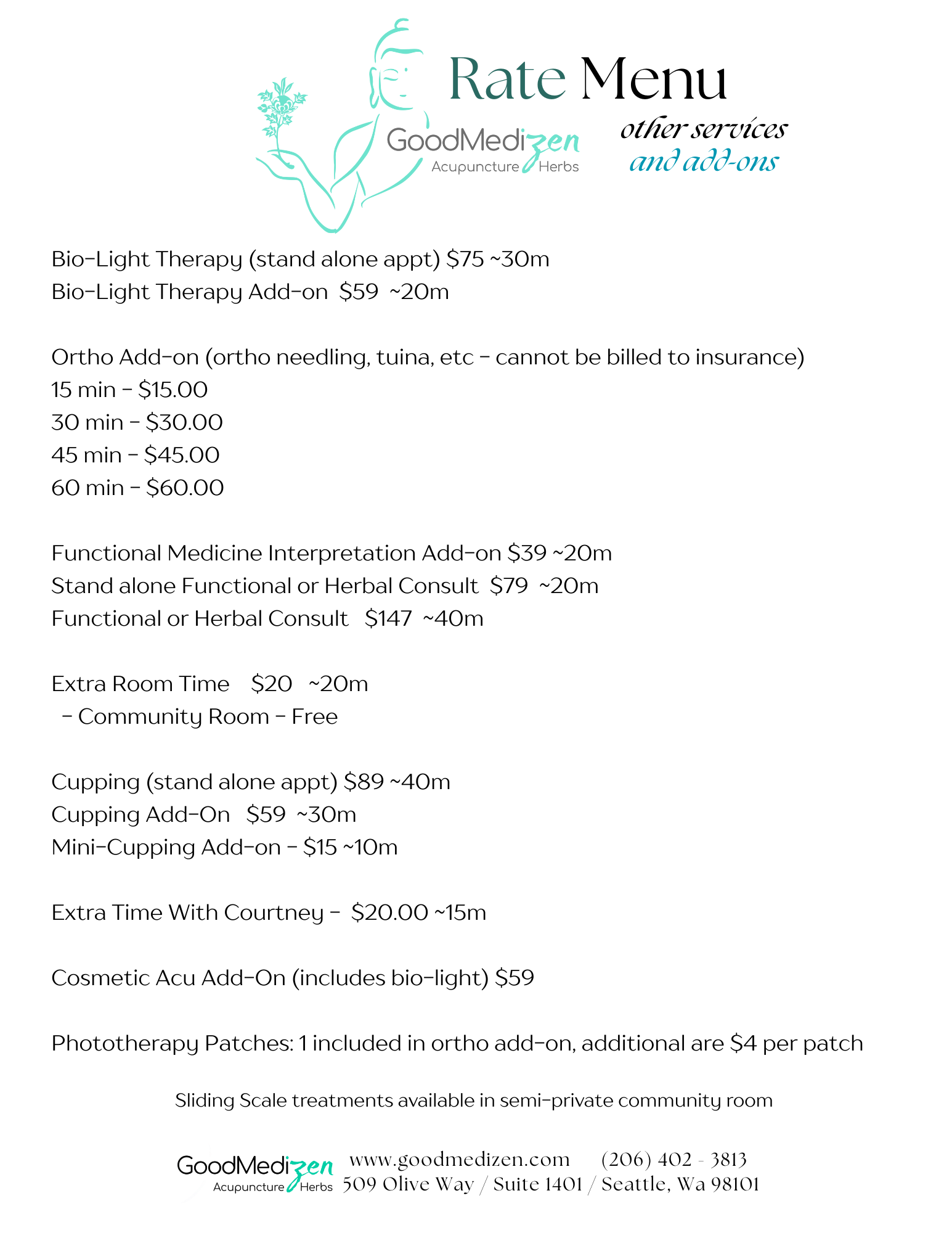 here are the rates for acupuncture without a membership. (see member rates and membership options below)